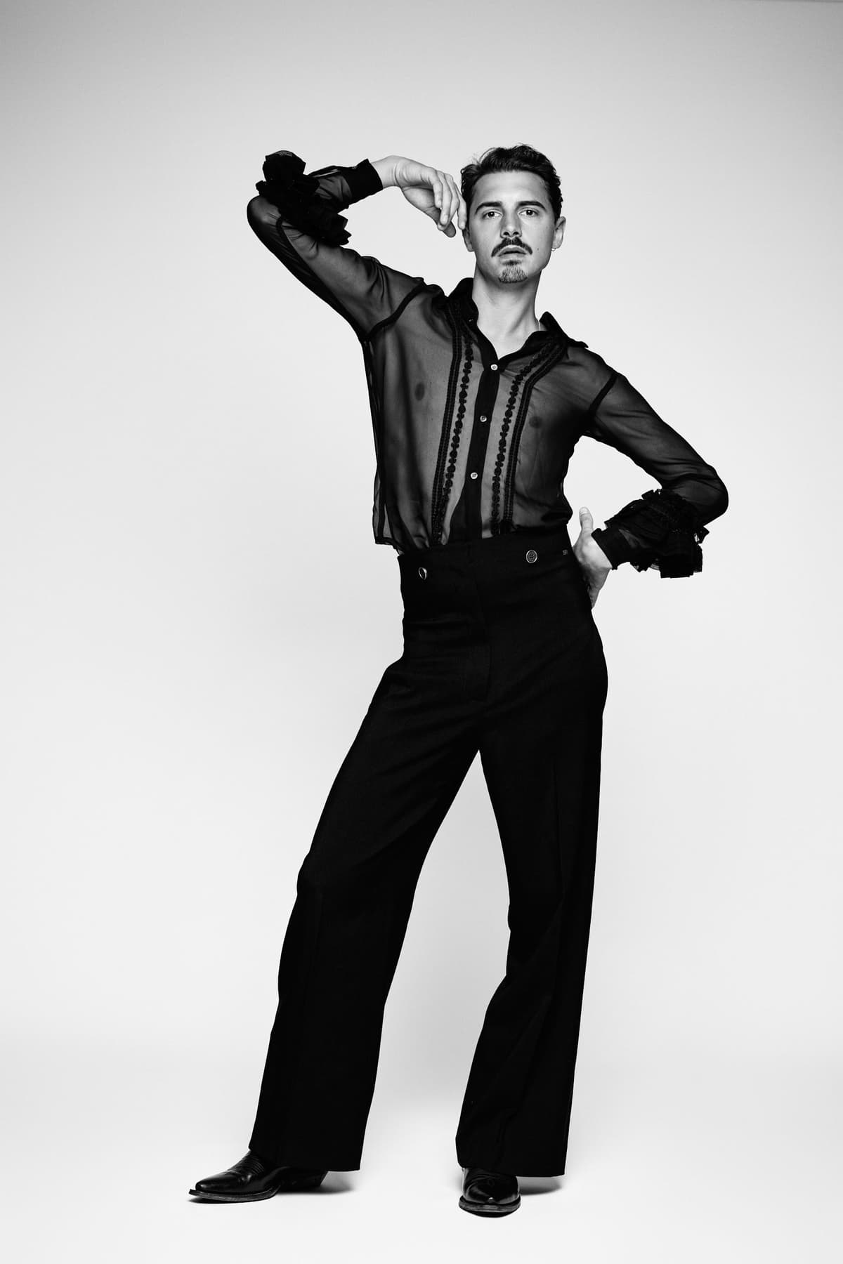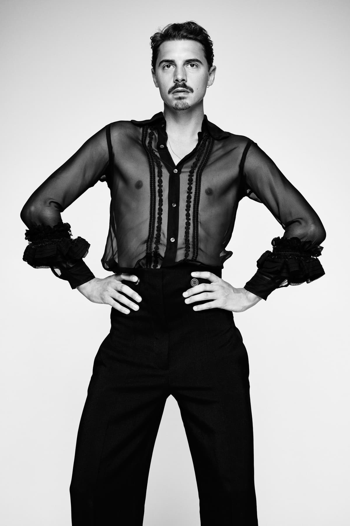 About the look: Mees Hilhorst gestyled in Comme des Garçons. Deze Victoriaanse bouse is afkomstig van de hand van de designer Rei Kawakubo en komt uit de 'Broken Bride' fall/ winter 2005 collectie. Deze vintage item is te huren op de Rental pagina
